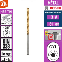 BOSCH Professionnel Forets HÉLICOÏDAL Robust-Line HSS-TIN [NITRURE DE TITANE] à queue lisse CYL spécial Métal - BOSCH 2608596681 Professional Ø 3mm