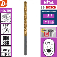 BOSCH Professionnel Foret HÉLICOÏDAL HSS à revêtement TIN "NITRURE DE TITANE" Ø 8mm pour le Métal - BOSCH 2608596731 / 20608P00015 Professional HSS-TIN