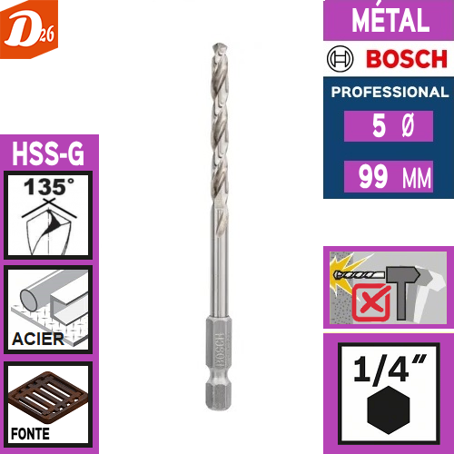 BOSCH Professionnel Forets HSS-G Robust-Line à Fixation Hexagonal spécial Métal Fonte - BOSCH 2608P00159 Professional Ø 5x99mm