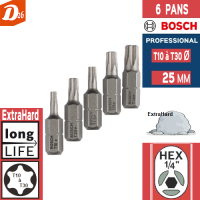 BOSCH Professionnel Set 5 embouts de vissage 6 Pans Qualité ExtraHard "EXTRA DURE" Modèles T10. T15. T20. T25. T30 Longueur 25mm - BOSCH Professional 2607001768 ExtraHard